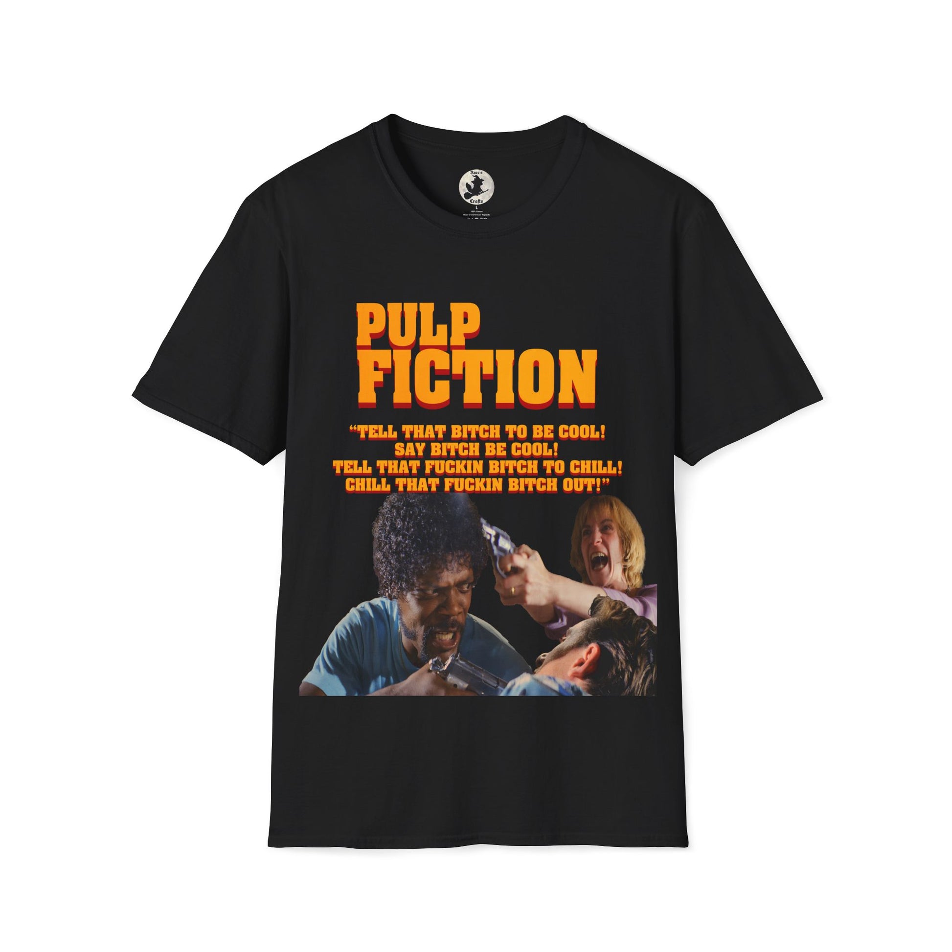 A classic Pulp Fiction-inspired unisex T-Shirt made from soft ring-spun cotton, featuring a crew neckline and a versatile style suitable for any occasion. Perfect for adults looking to add a stylish and comfortable tee to their wardrobe, especially fans of the iconic movie. Ideal for casual wear, movie nights, themed parties, and as a unique gift for film enthusiasts.